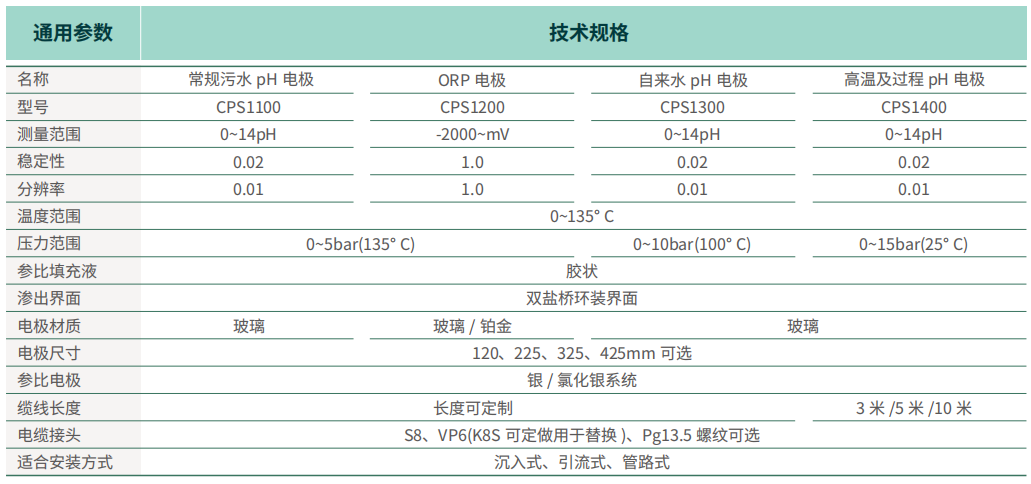 CPS1100/1200 在線 pH/ORP 電極
