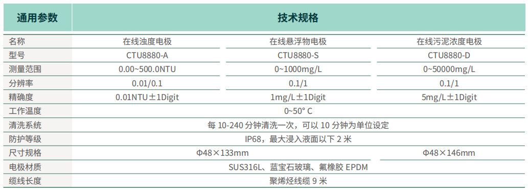 CTU8880 系列 在線濁度 / 懸浮物濃度 / 在線污泥濃度電極